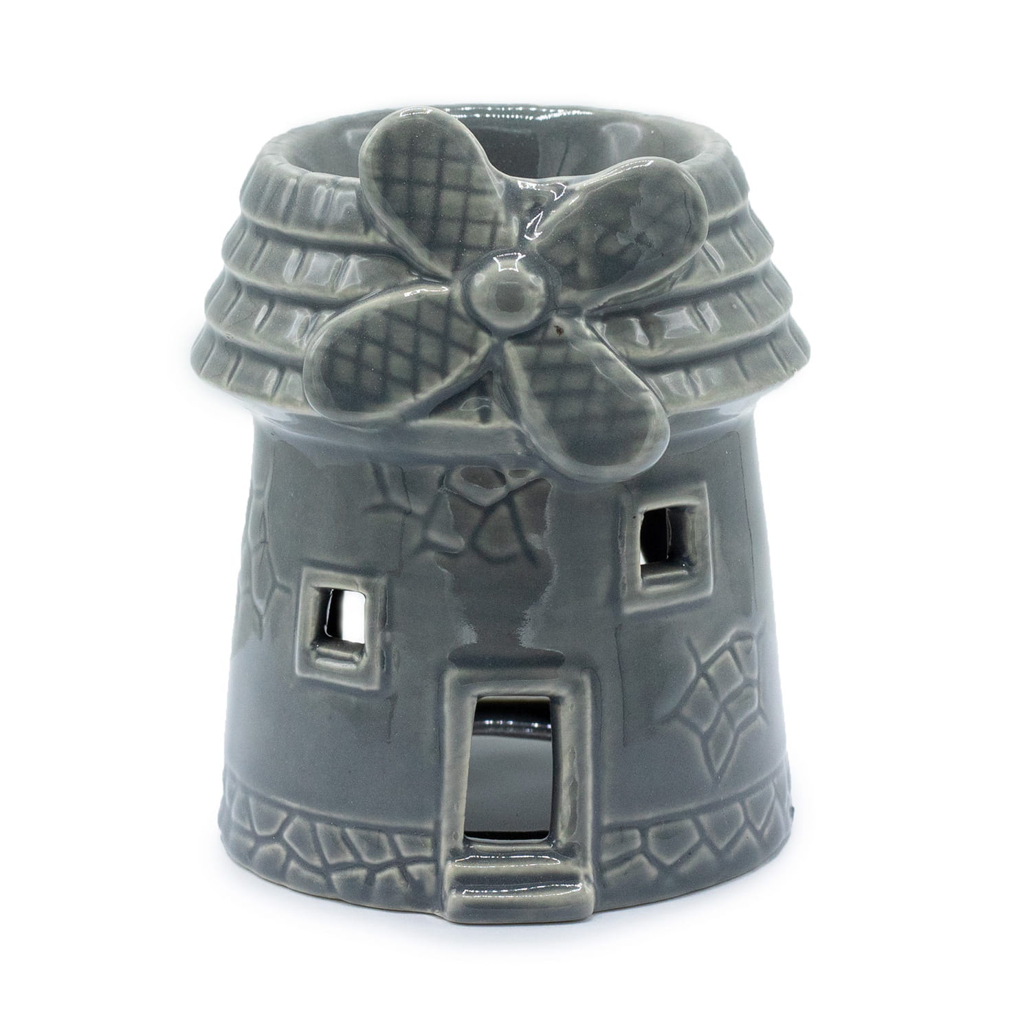 Szürke szélmalom formájú kerámia aromalámpa – különleges illóolaj párologtató illóolajokhoz és aromaviaszhoz.